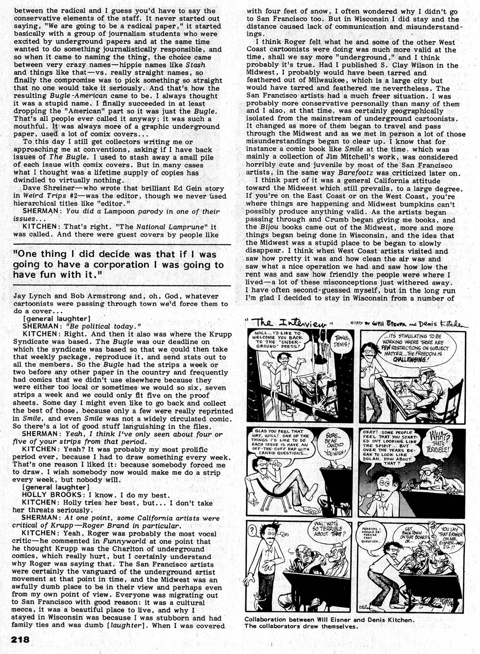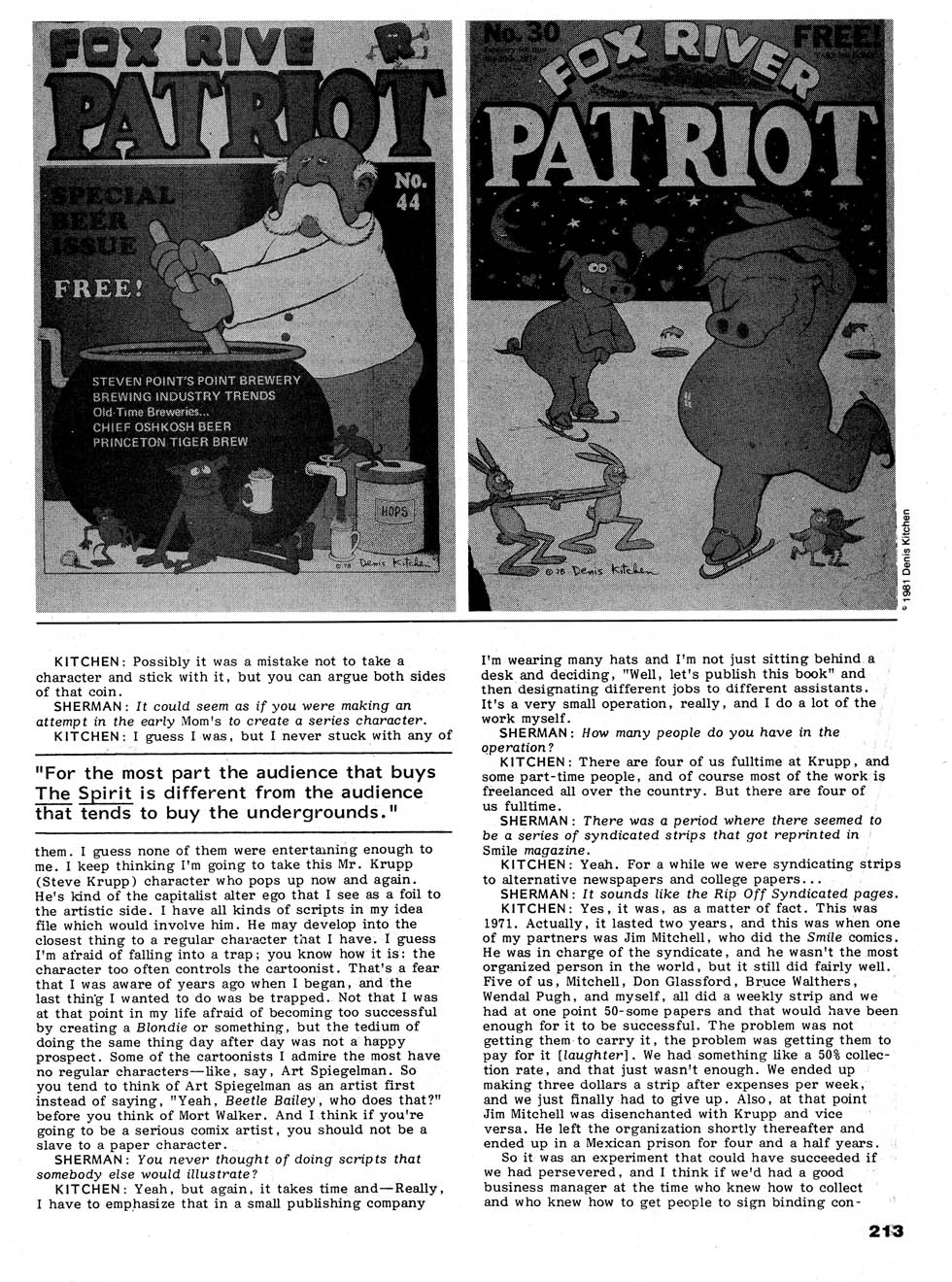 Kitchen was interviewed in The Comics Journal #63, page 214: