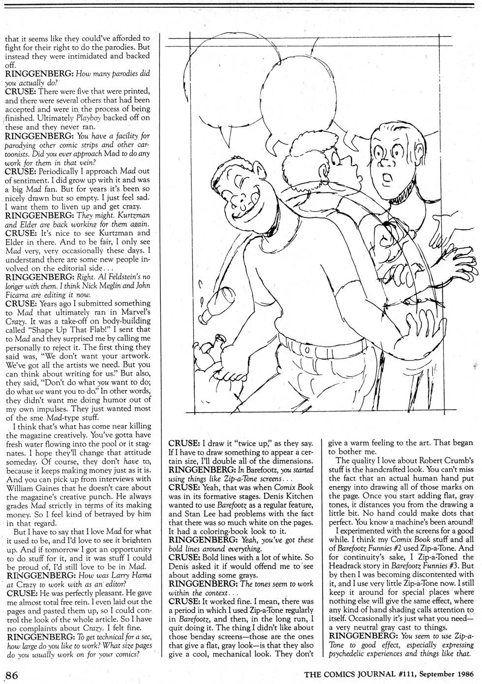 Cruse is interviewed in The Comics Journal #111, page 86: