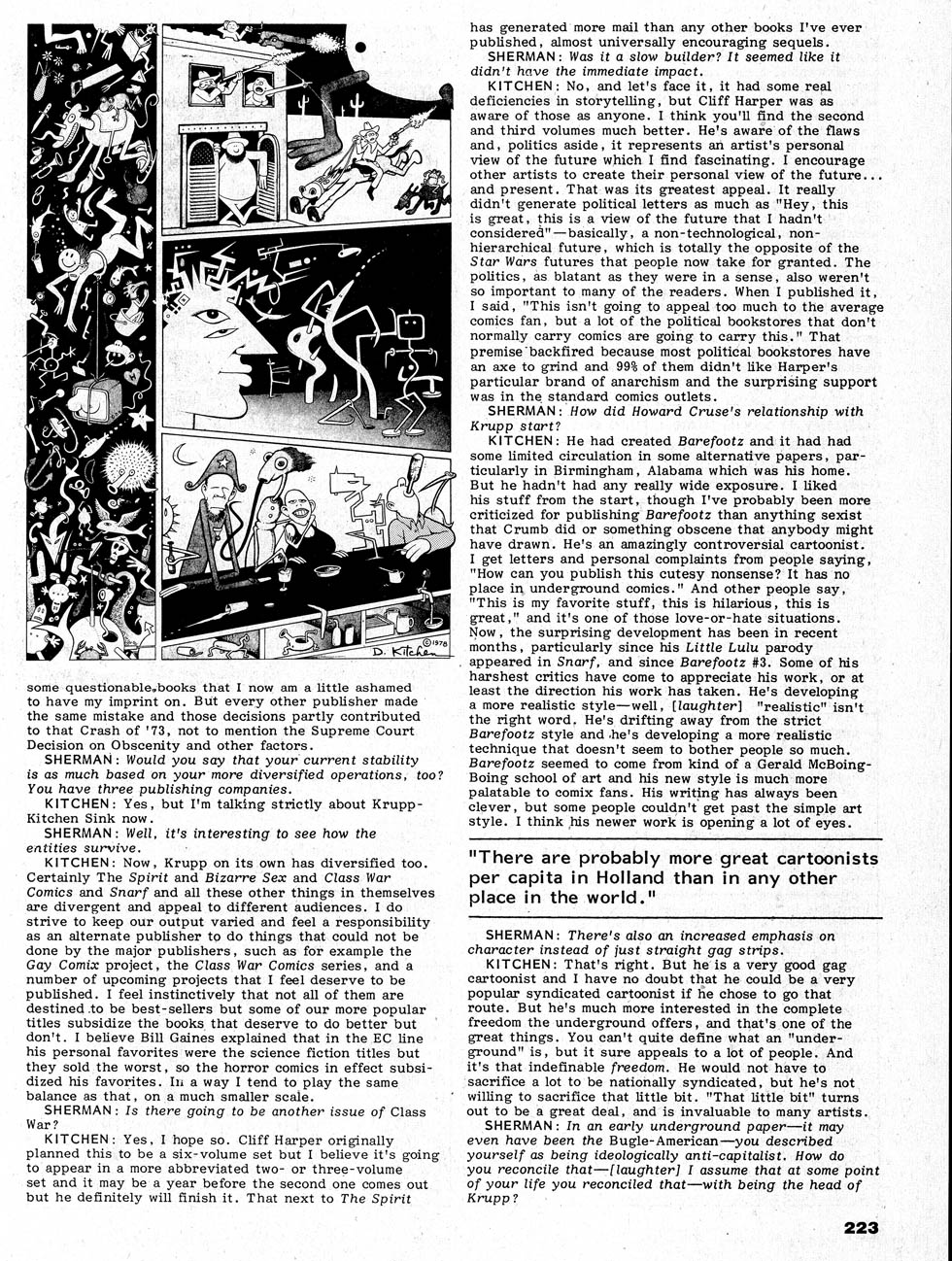 Kitchen is interviewed in The Comics Journal #63, page 224: