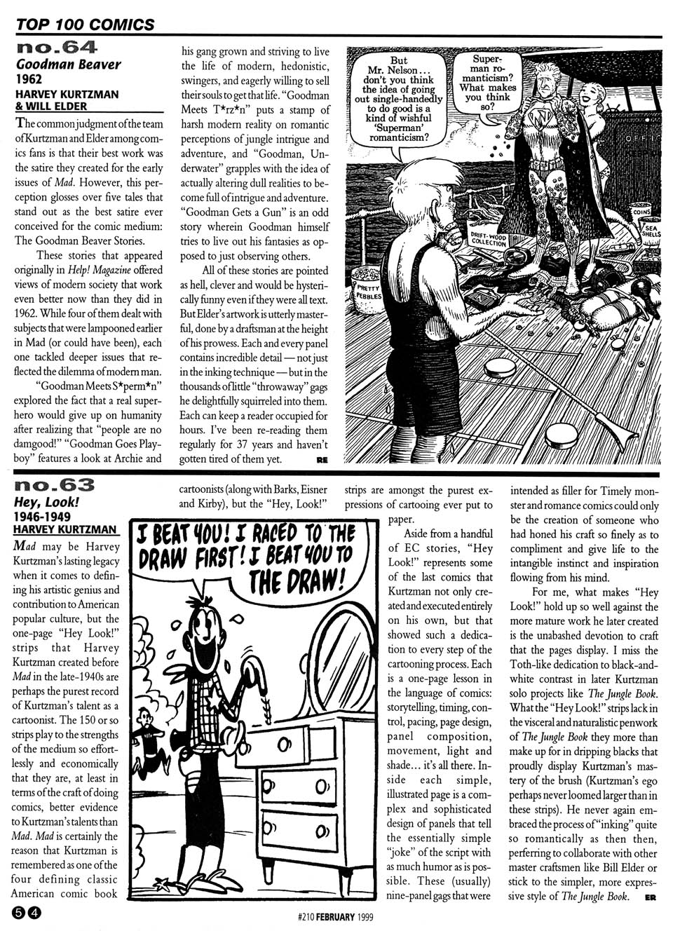 It’s number 64 on the Top 100 comics in The Comics Journal #210, page 56: