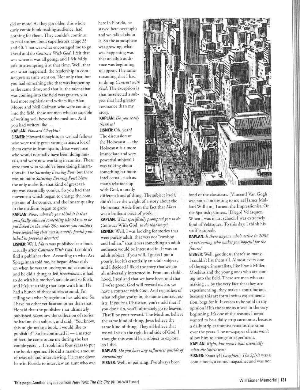 Eisner is interviewed in The Comics Journal #267, page 133:
