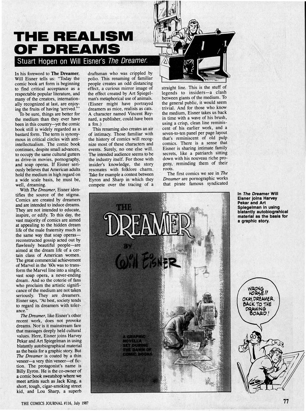 Eisner’s The Dreamer, to the effect that he sugar-