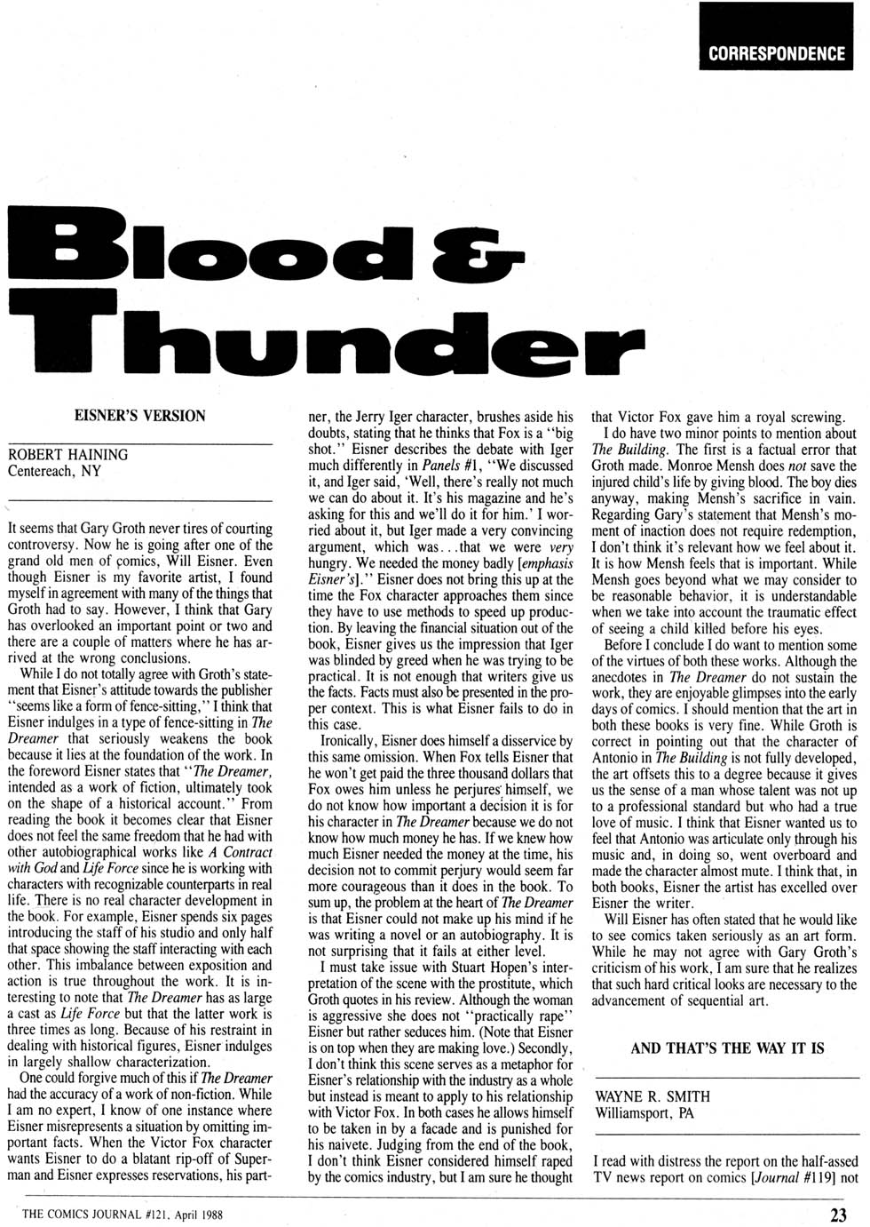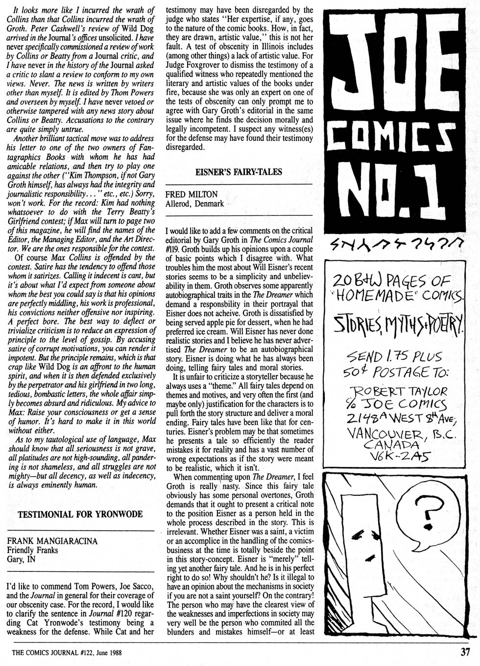 Gary Groth writes in The Comics Journal #119, page 7: