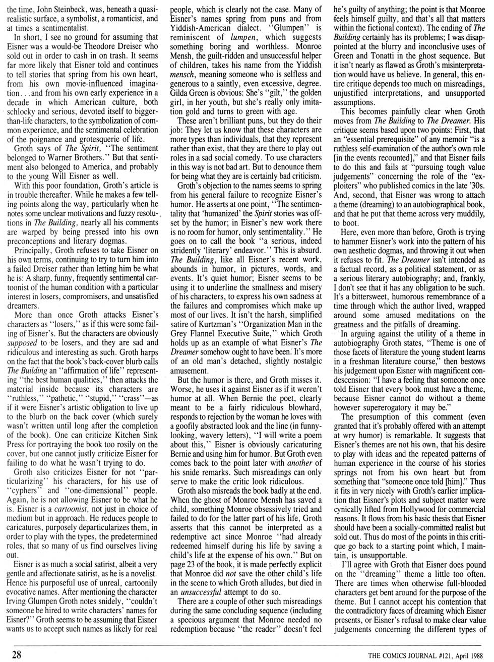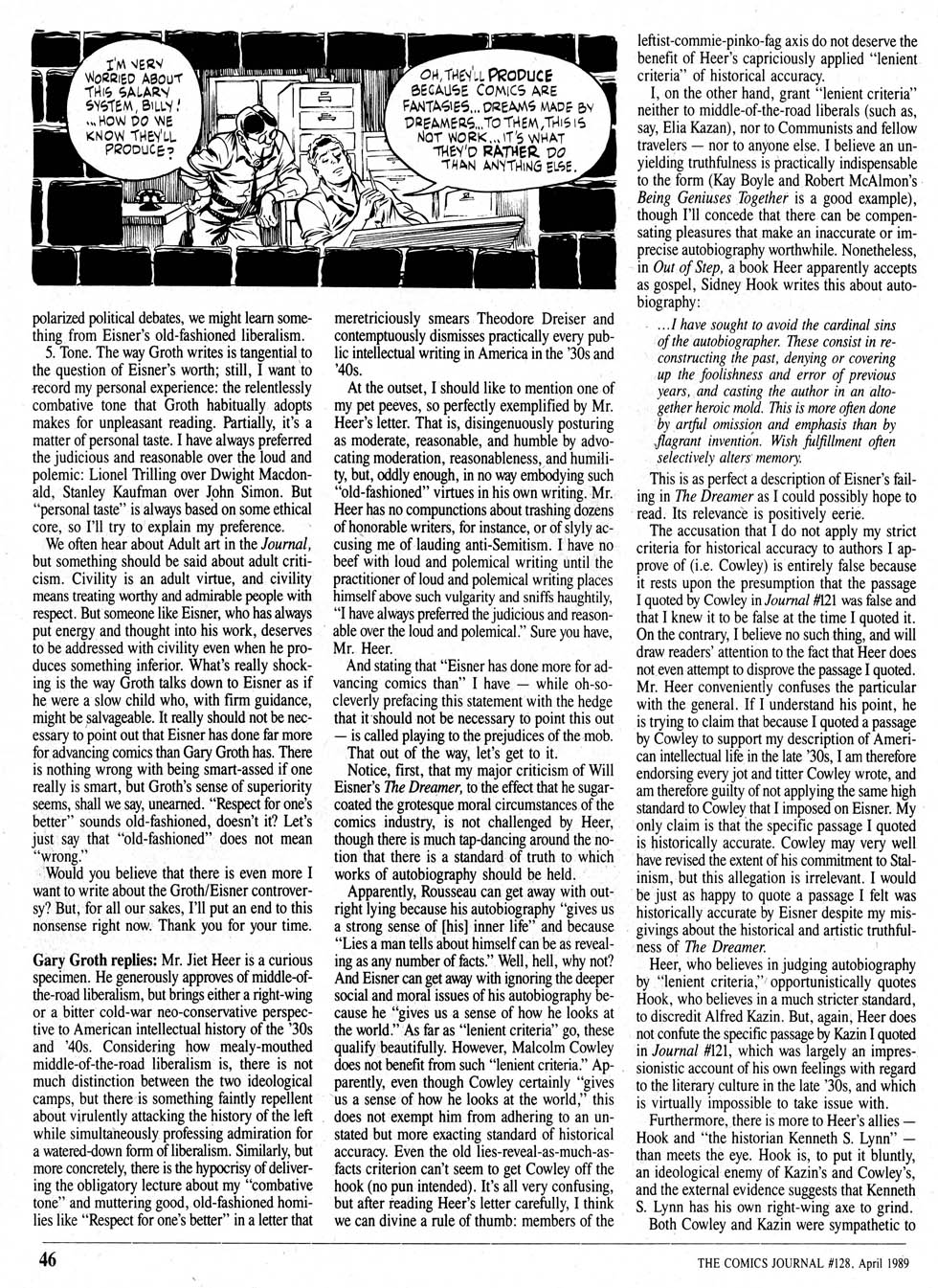 Gary Groth answers Jeet Heer writes in The Comics Journal #128, page 48: