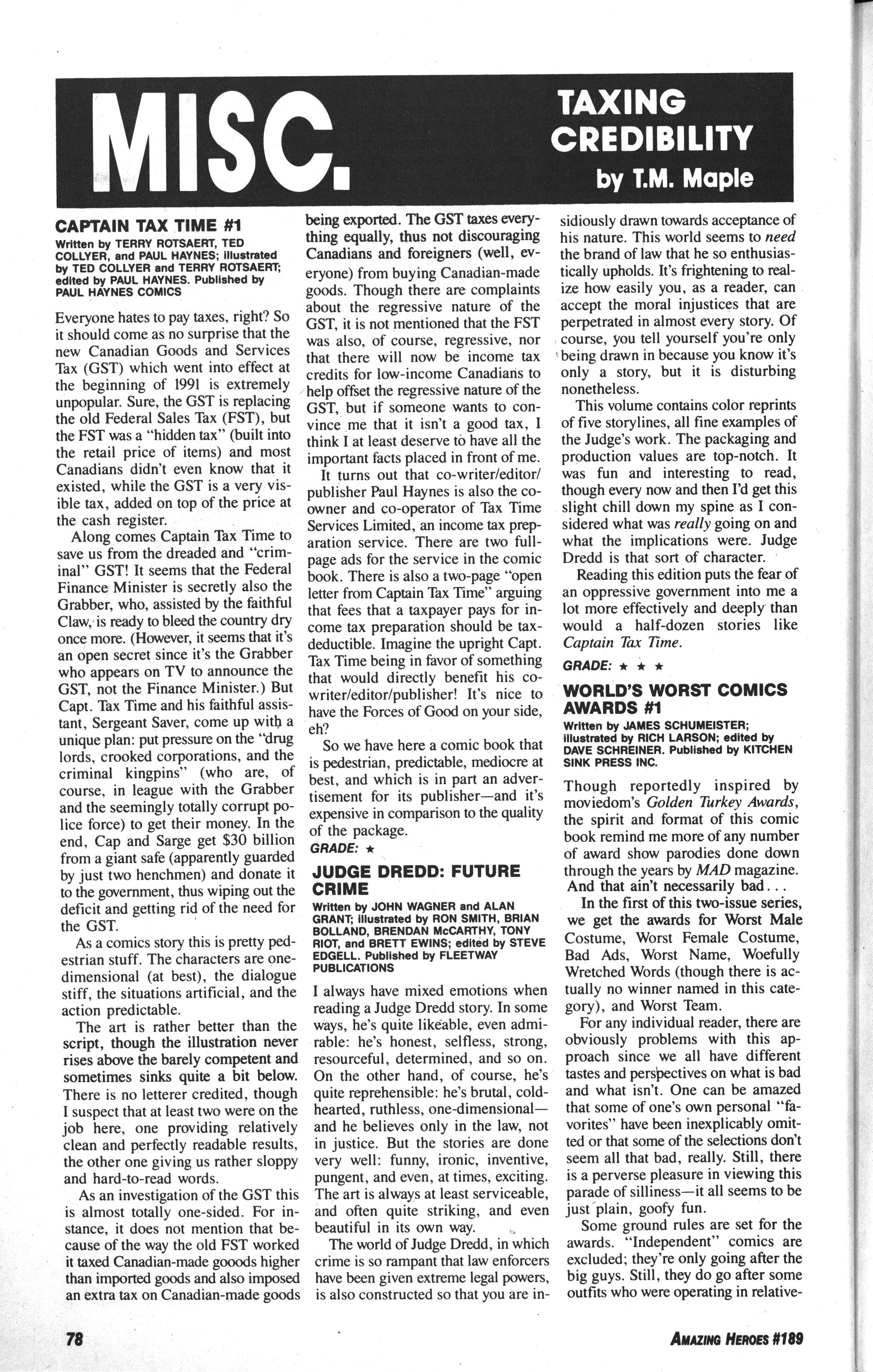 World’s Worst Comics Awards (1990) #1-2 by James Schumeister and Rich Larson