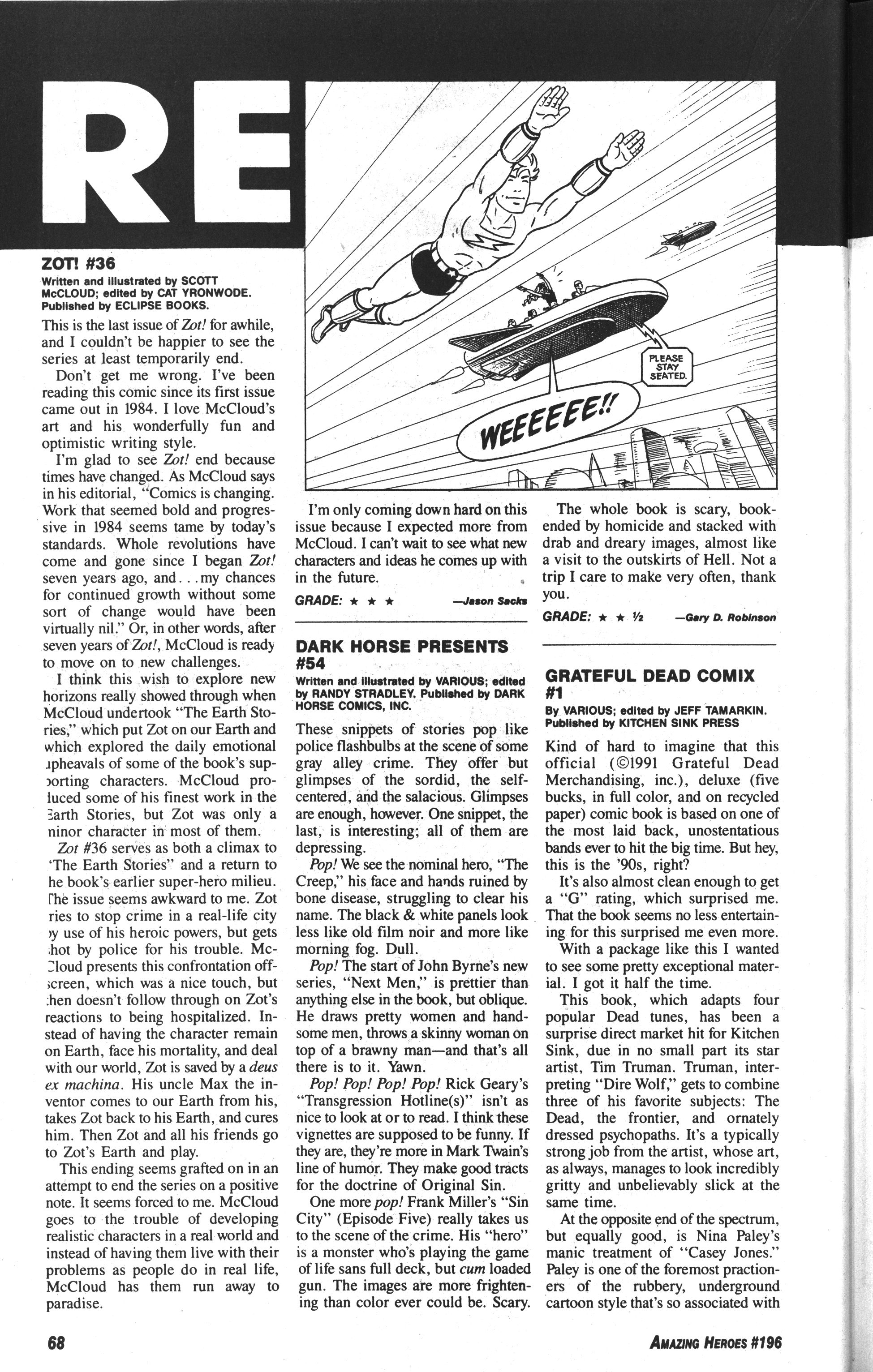 Finally! Some good comics! Terry LaBan (who’s been to over 200 Grateful Dead shows) does a story about going to one of their shows. And it’s fun. He does a handful of these bits over the length of the series, and they are (for me) the best bits of the series.