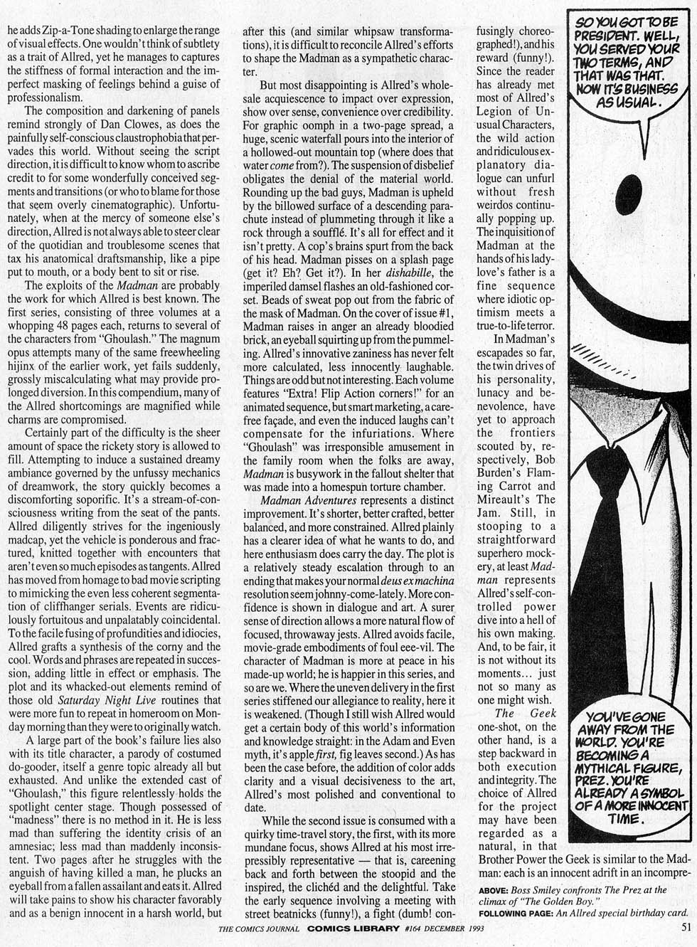 I was a huge Allred fan back in the Graphique Musique/Graphic Music days, but I lost track of him soon after, and never read his Madman stuff, for some reason or other.