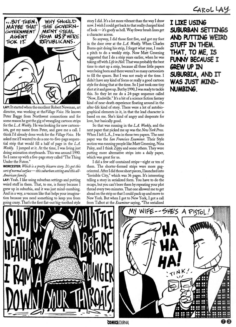 Lay is interviewed in The Comics Journal #213, page 75: