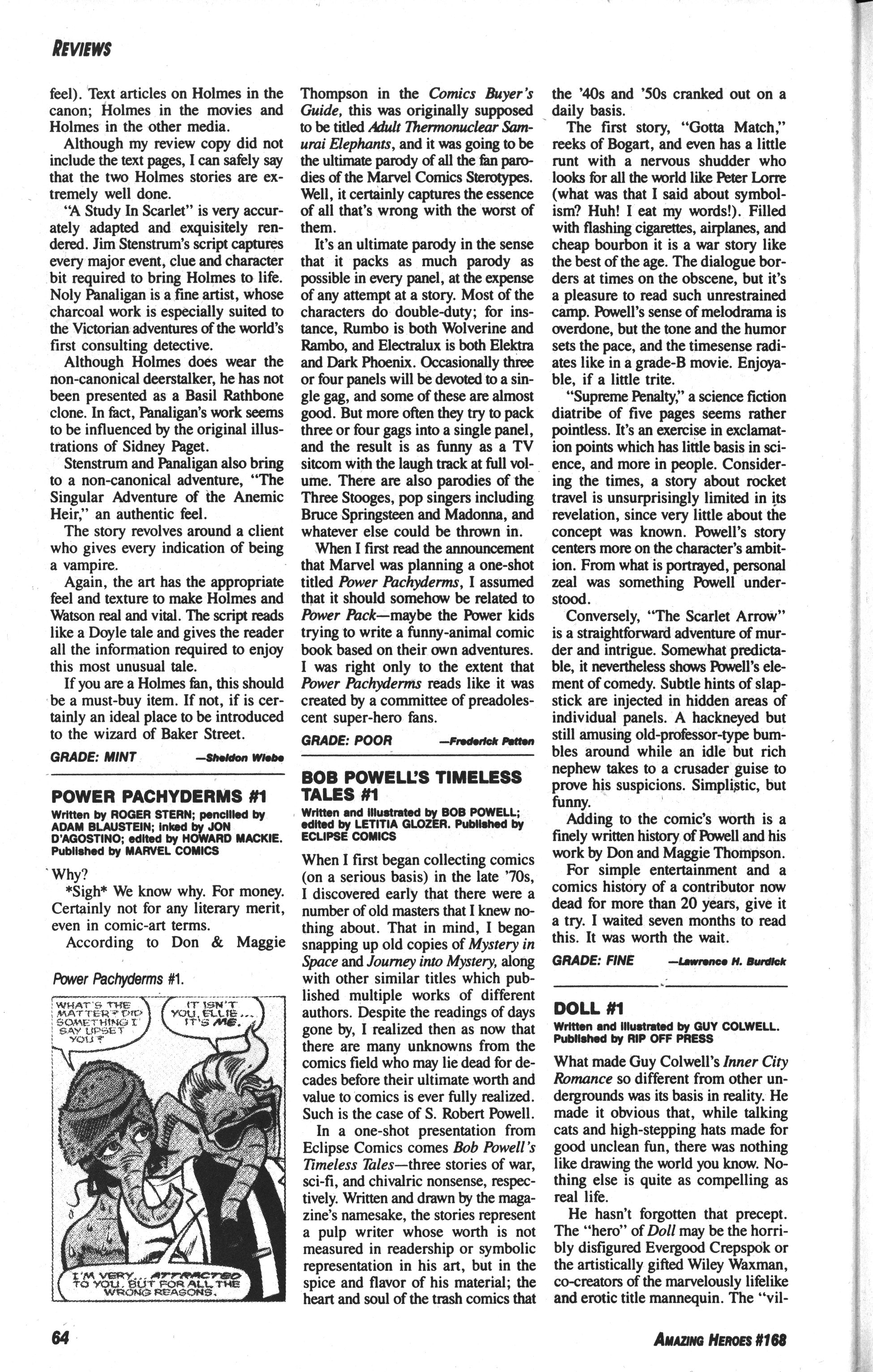 Doll may have been published as part of a line of wank books, but creator Guy Colwell delivers much more than mere sexual thrills. In fact, he delivers a comic that is nearly the precise opposite of what it promises. In the end, Doll reads like a warning that excessive blind lust will corrupt minds, destroy lives, kill relationships, and act as slow poison for society. It’s a sobering book which contains themes that are as contemporary as they were thirty years ago.