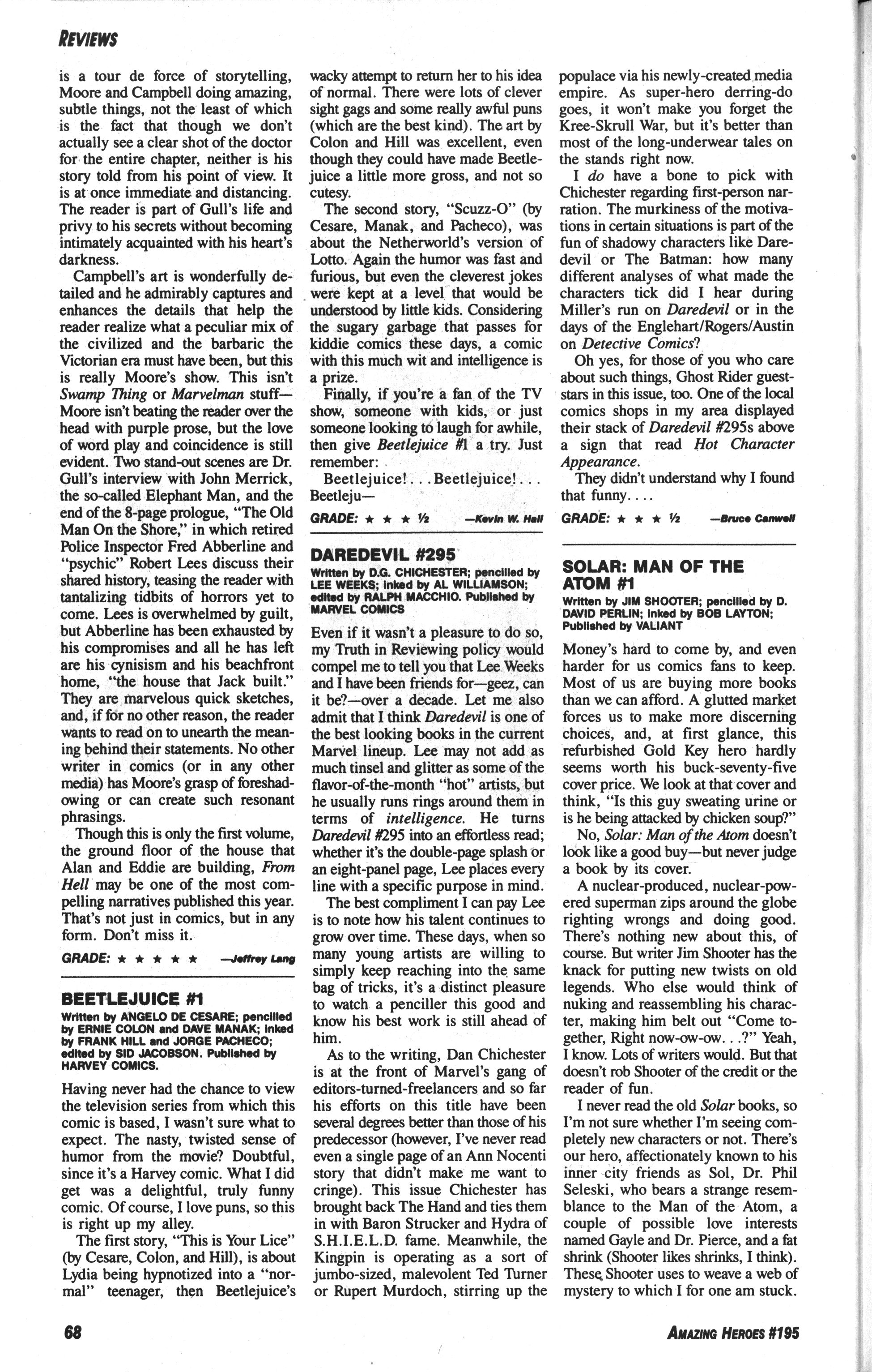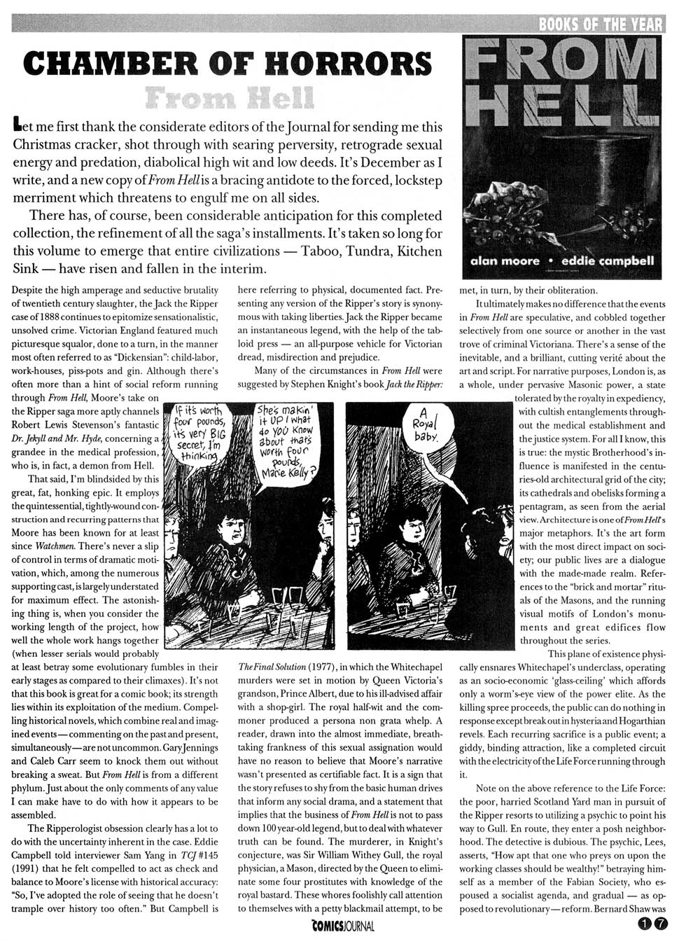 The collected From Hell was a Book of the Year. Larry Rodman writes in The Comics Journal #220, page 19: