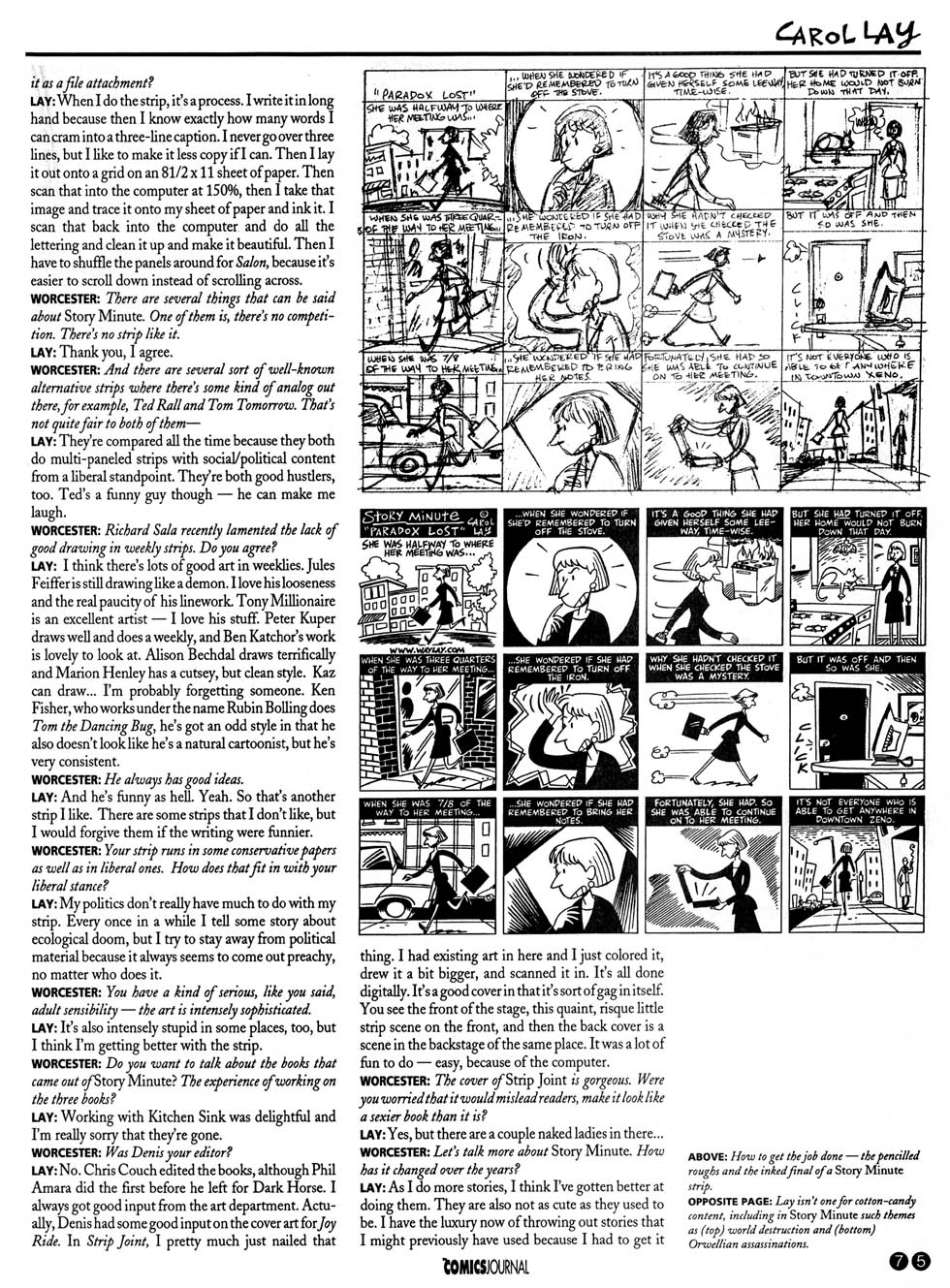 Lay is interviewed in The Comics Journal #213, page 77: