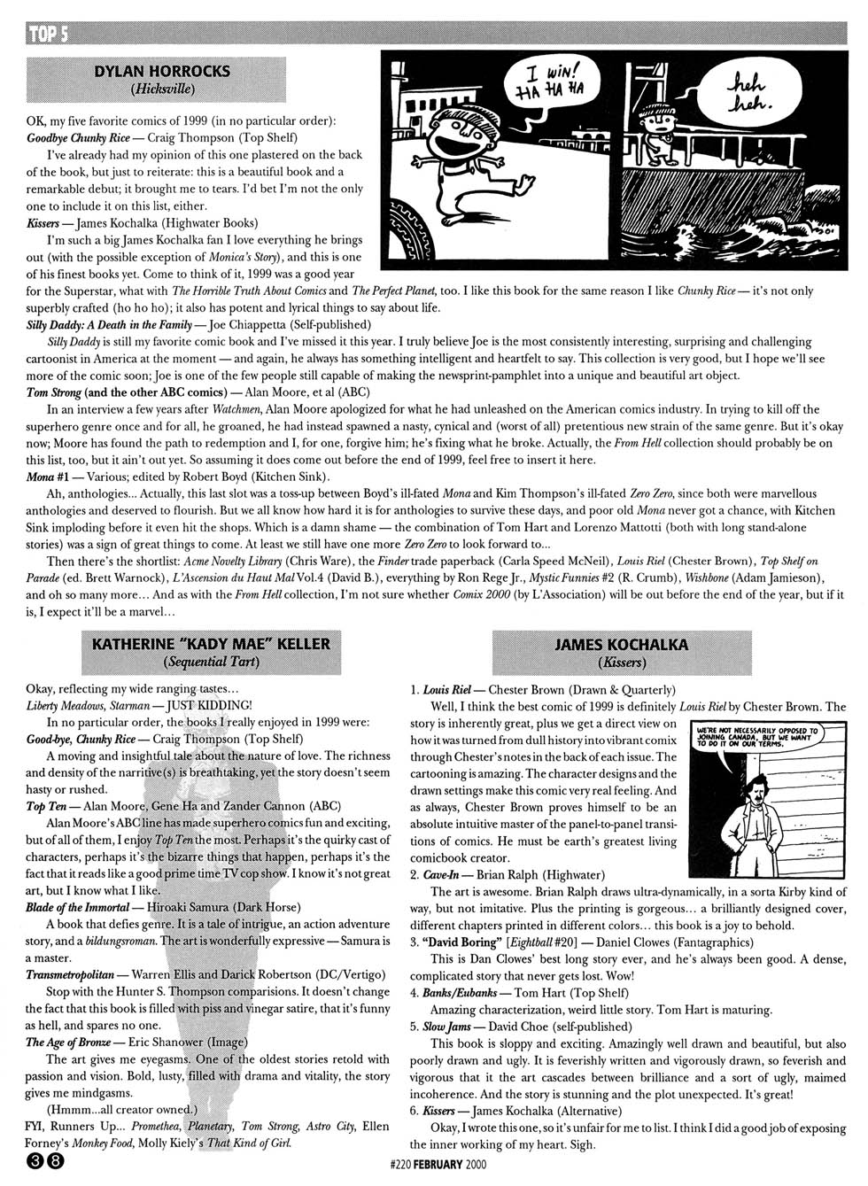 Milo George includes it in his top 5 in The Comics Journal #220, page 37: