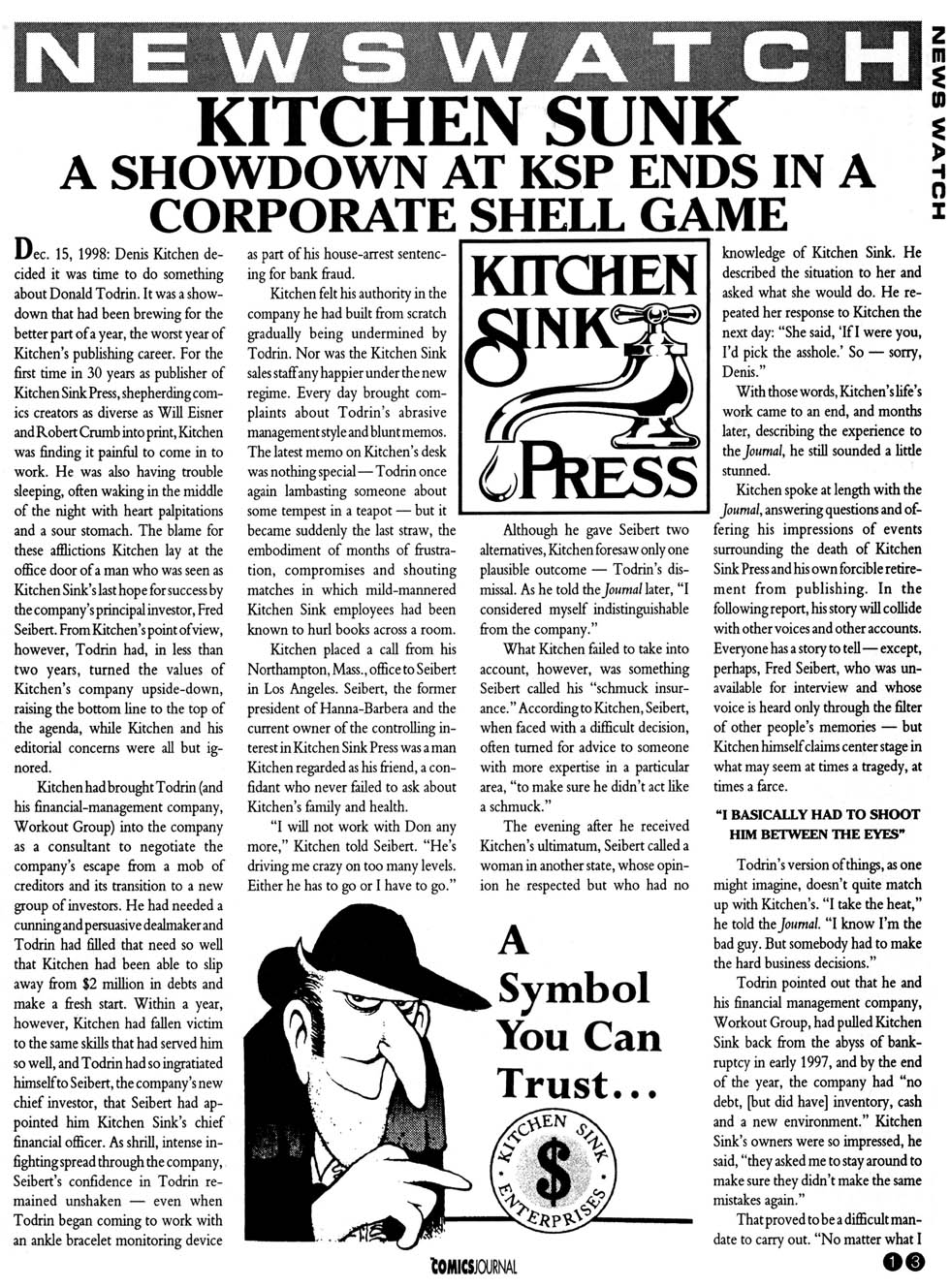 In short, a swindler called Donald Todrin was instrumental in getting Fred Seibert to pony up money to buy Kitchen Sink from the smoking embers of Ocean Group in 1997. This was after the second Crow movie had bombed, and Kitchen Sink was left with a lot of unsaleable merchandise.