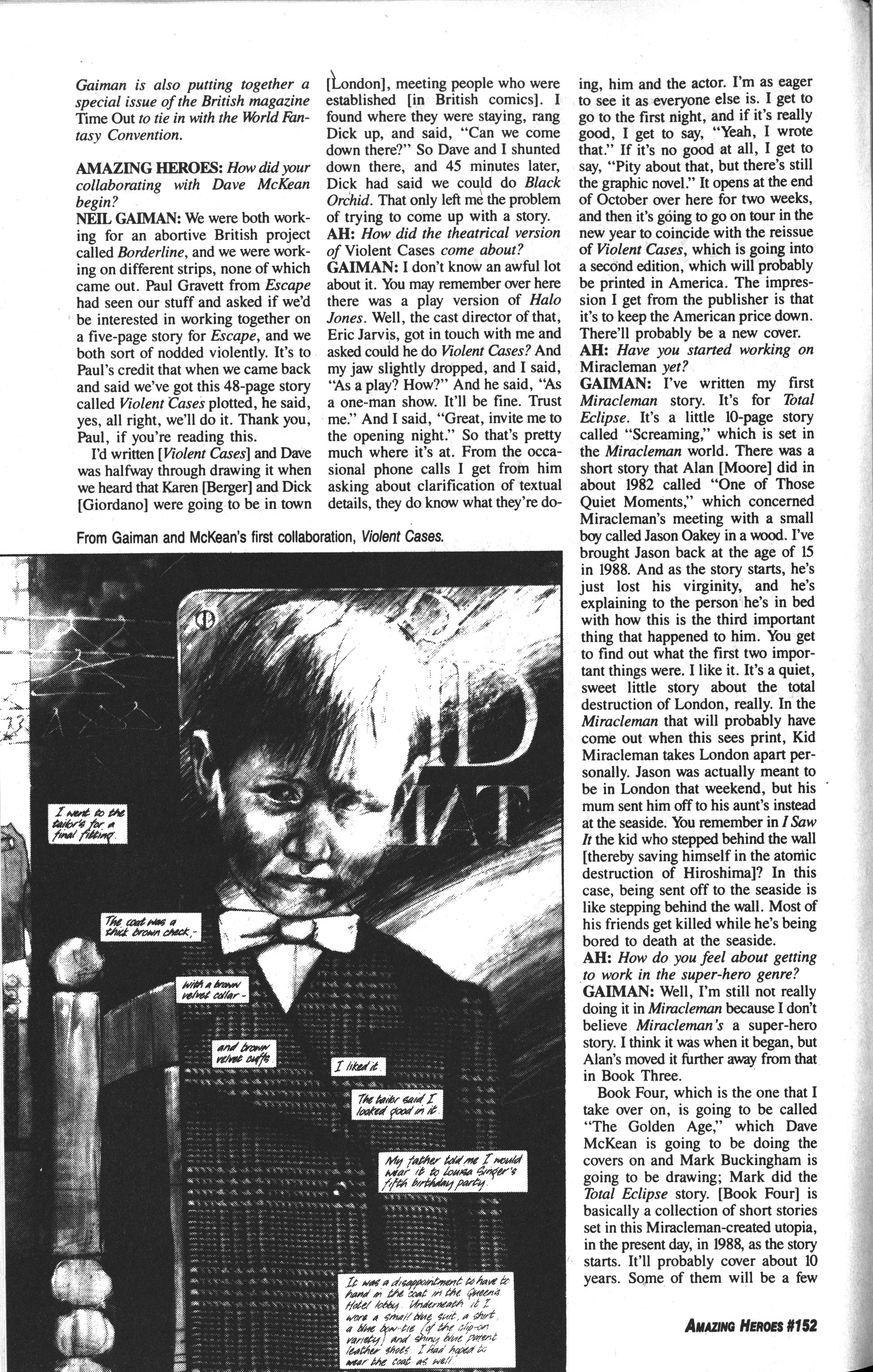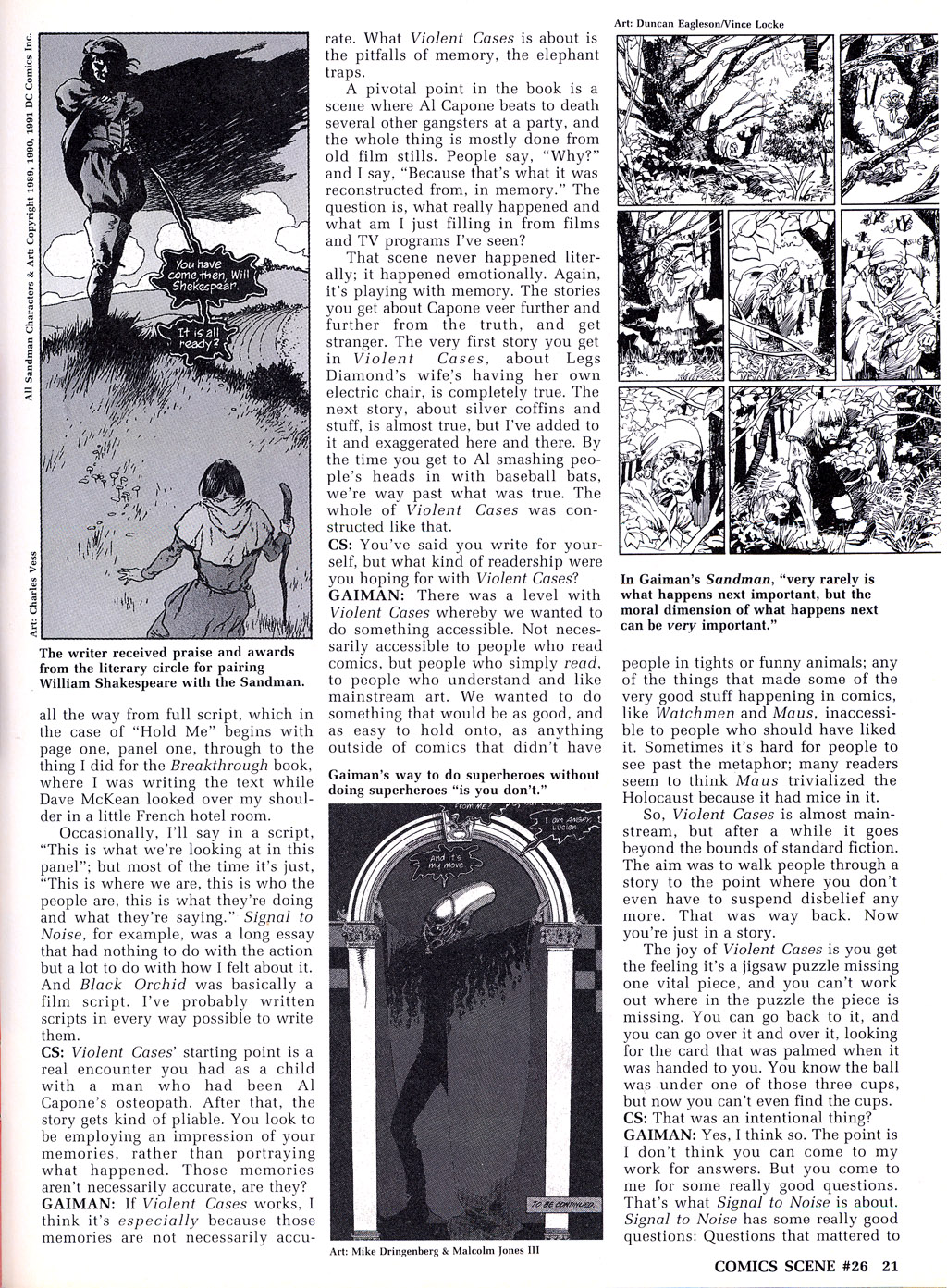Gaiman is interviewed in Comics Scene Volume #2, page 21: