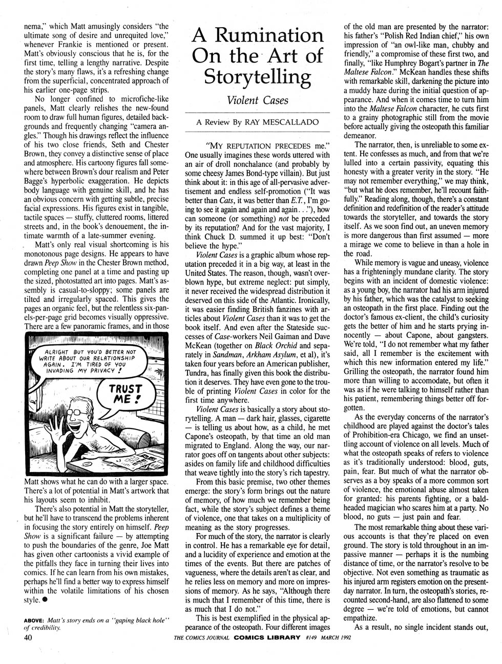 The scheme crashed and burned, because mainstream audiences were only interested in Maus anyway… but things like Violent Cases got a lot of attention.